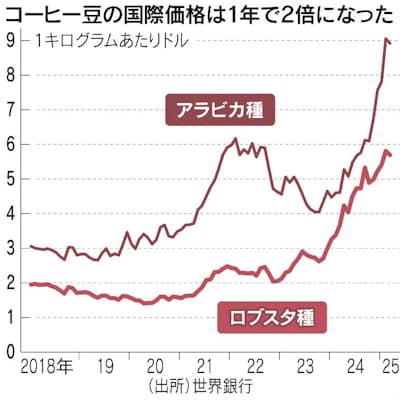 米もそうだけど、コーヒー豆の不作も気候変動が影響しているのかな。